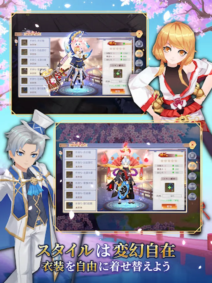 Freely combine costumes, weapons, and hairstyles to become a fashionista!