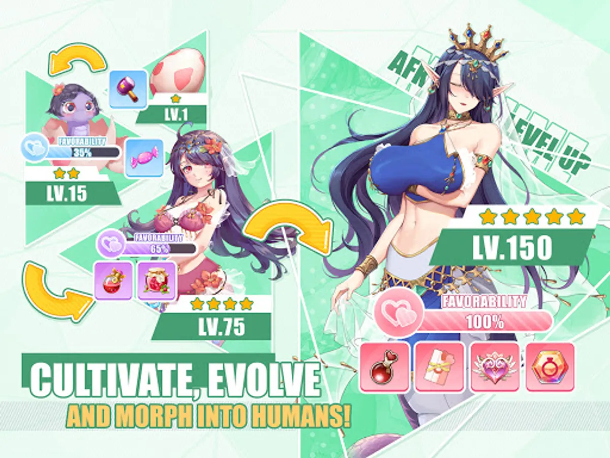 Hatch monsters and treat them with care. They'll turn into humanoids as they grow.