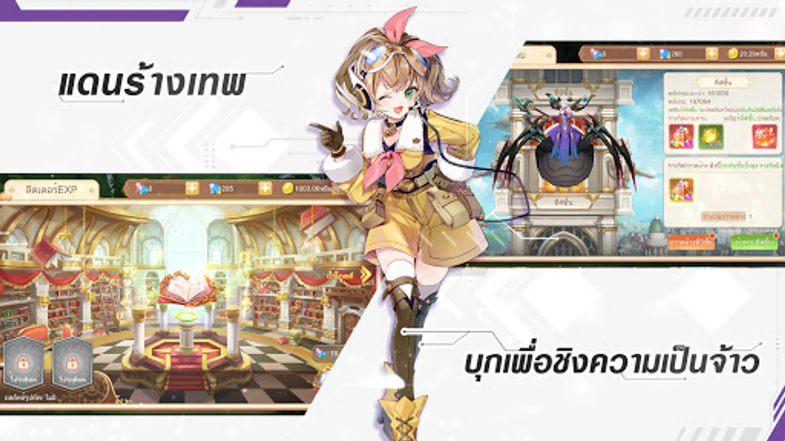 Come and find your lovely partner according to the map. You can bring Battle by your side Do not forget to find items to train to be strong. When your partner reaches a certain level Able to keep the gods advent Collect all the Advent Seal Will give a distinct battle result