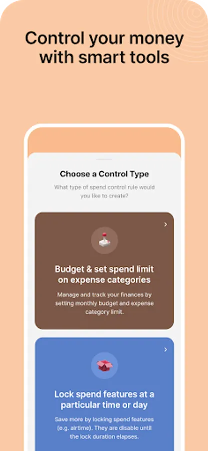 Run your money, don’t let it run you. Set up Controls around your money to hold yourself back from spending during specific periods of time. Stay within your budget on food, clothes, drinks, etc., and get notified when you’re going above your budget.