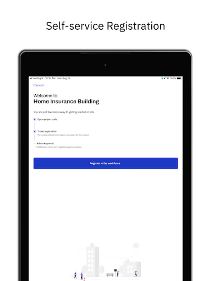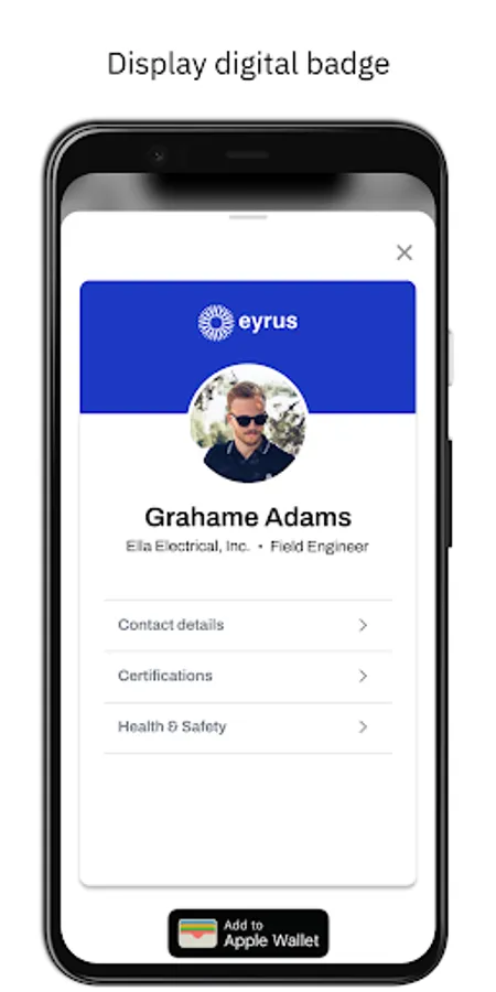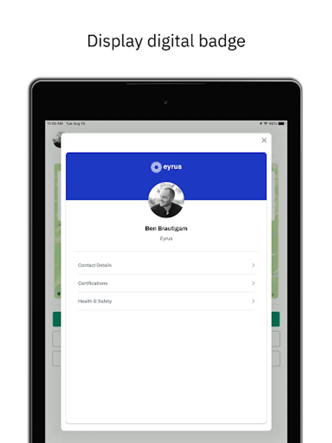 The Eyrus app provides simple and automatic workforce management, visibility, and badging tools no matter the project or job size. Tradespeople can register themselves to a project, automatically check-in and out of the jobsite, view timesheets, and keep their profile and certification information up-to-date right in the app.