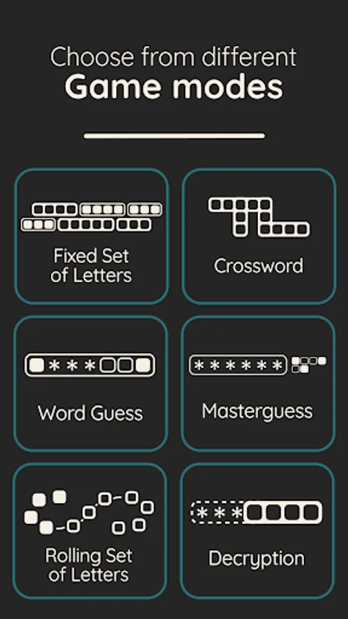 - "Masterguess": Like "Word Guess", the objective is to guess a word of 4 to 8 letters. But in this mode, the clues are given, as in a famous game, next to the word and not directly on the letters.