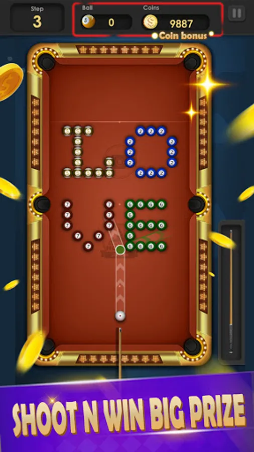 Train your skills, improve your game and defeat the opposition to gain access to new city bars, win trophies and become the 8 Ball Pooling Champion!