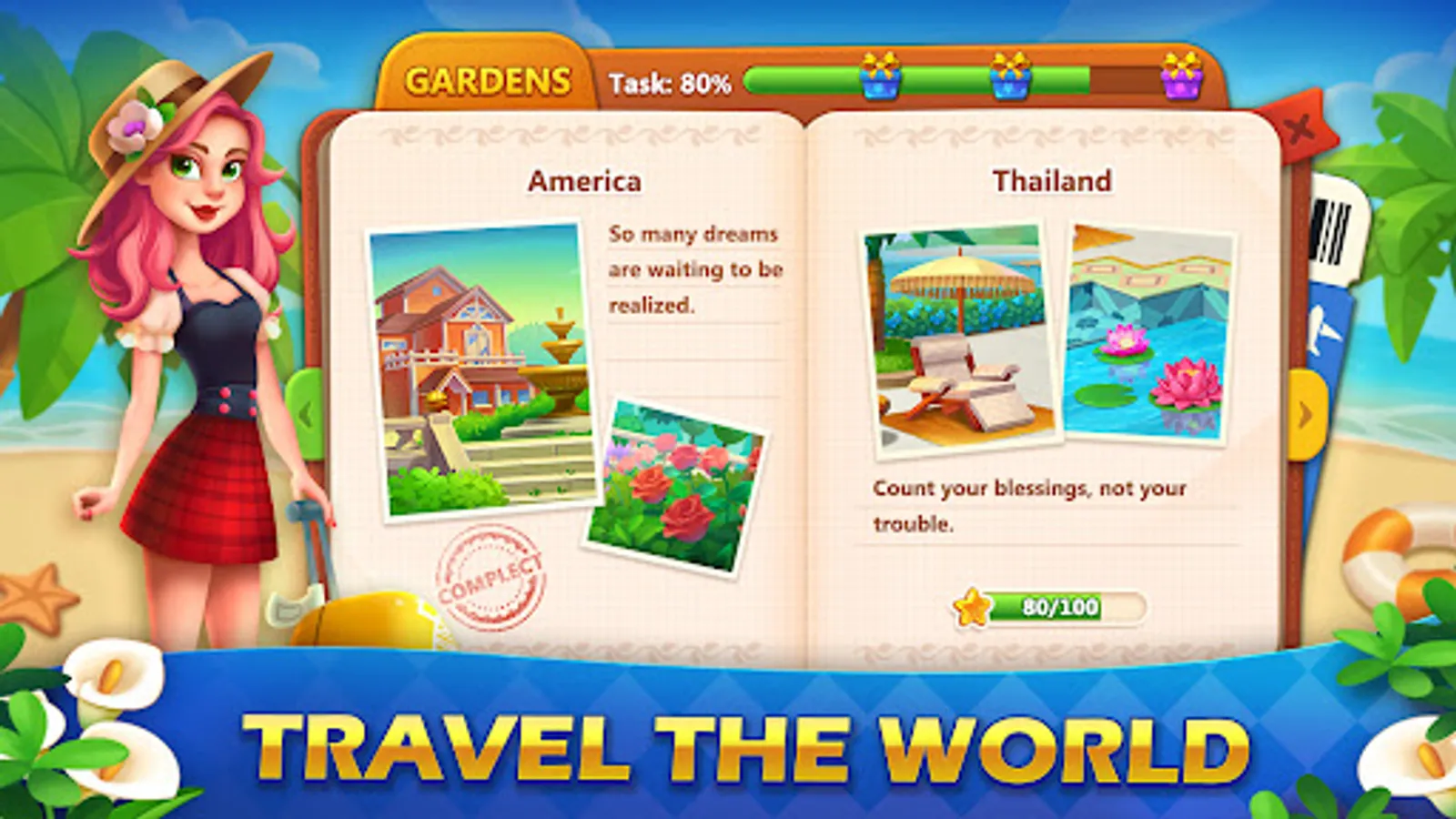 Finish each Solitaire Garden level to win credits , gems and flowers.