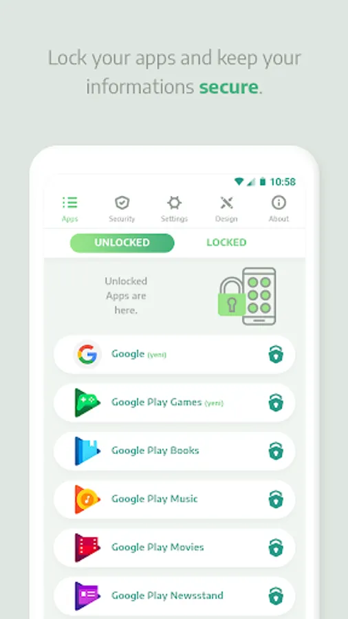 ☆ If you use your locked apps often so you can set standby time after unlock any app.