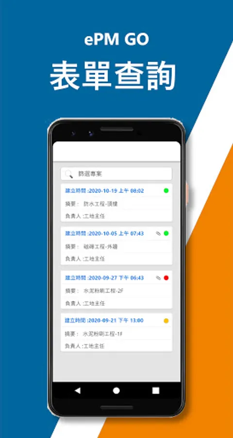 The ePM GO Project Special Assistance App is an All-in-One mobile application tool designed for your virtual and remote teams that combines communication, collaboration, and information security needs. Supports a variety of industrial applications, from project collaboration, maintenance dispatch, project inspection, to temporary assignment. The ePM GO project special assistance app allows your team to keep information synchronized with the headquarters at any time, providing convenient and effective tracking and interactive management, and greatly improving team actions force.