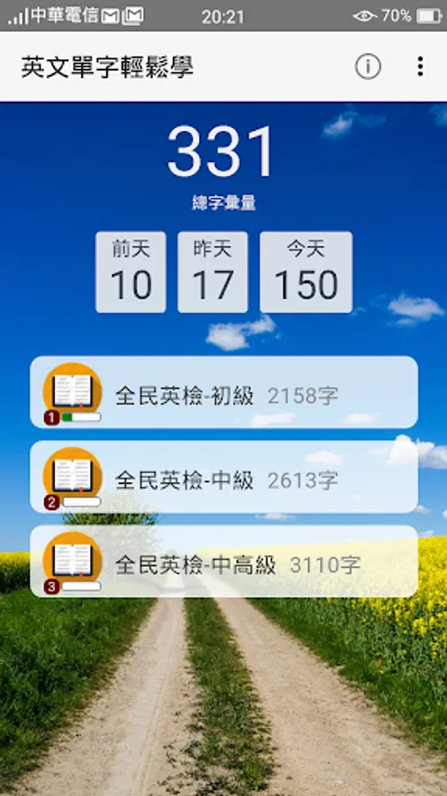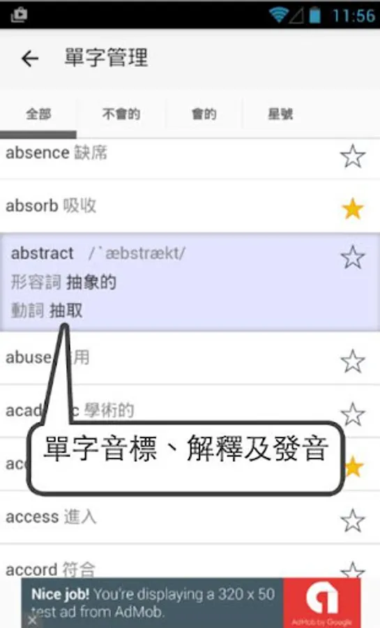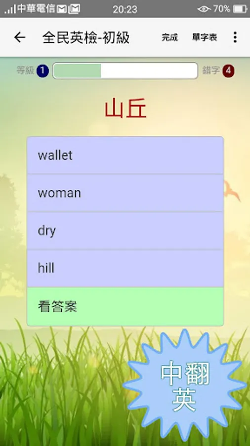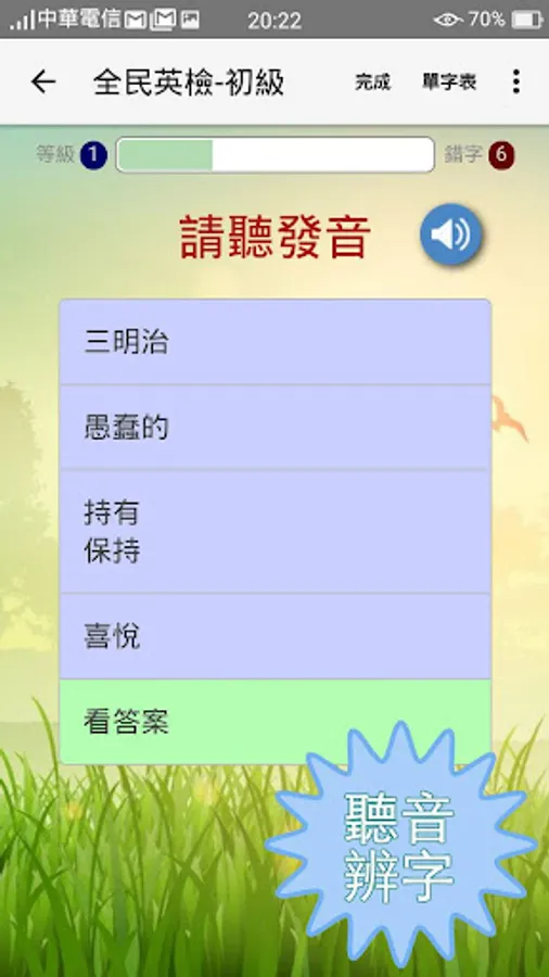 ♥ 英翻中、中翻英、聽音辨字,三種方式隨機出題,學習全方位