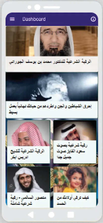 - يحتوي التطبيق على مجموعة من الرقى بصوت القارئ مشاري العفاسي لعلاج السحر والمس والعين والحسد وهناك ايضا رقية قوية بصوت الشيخ خالد الحبشي القارئ والامام والخطيب والماعلج بالرقية من القران الكريم والسنة النبوية اضافة الى دعاء قوي ومؤثر بصوت خالد الحبشي لعلاج كافة أنواع السحر كما يحتوي التطبيق على اية الكرسي مكررة بصوت الشيخ وديع اليمني