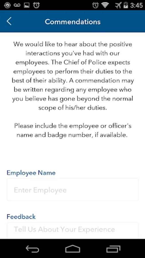 Welcome to the Andriod app for the Long Beach Police Department. The Long Beach Police Department app allows users to report issues or concerns directly from your Andriod device with photos! There are useful links for community resources, crime prevention, and on-line reporting!