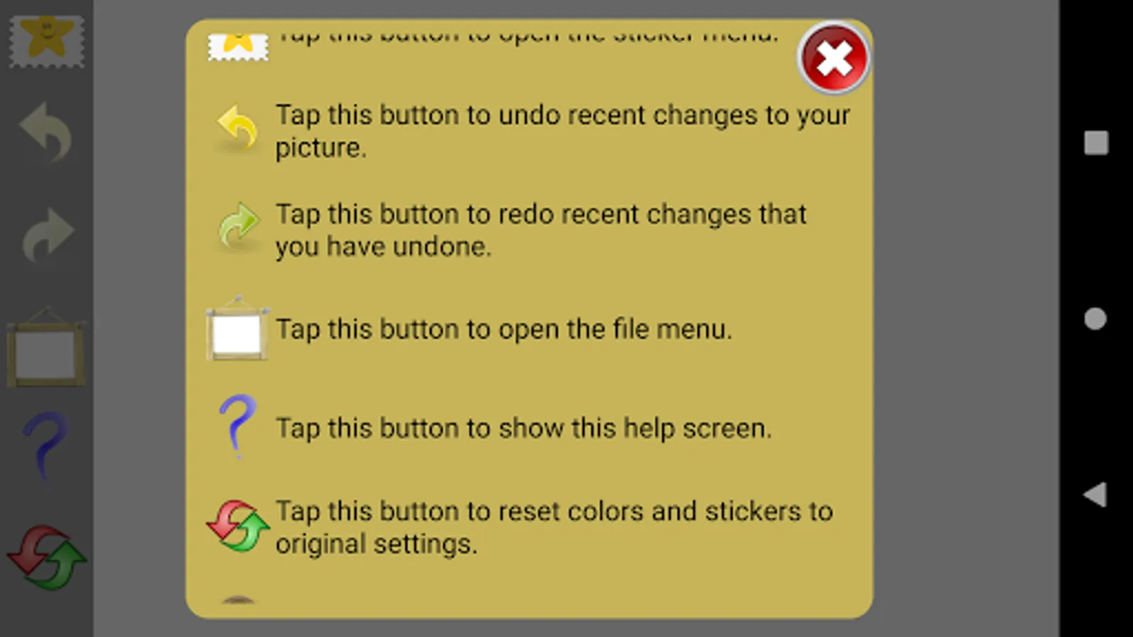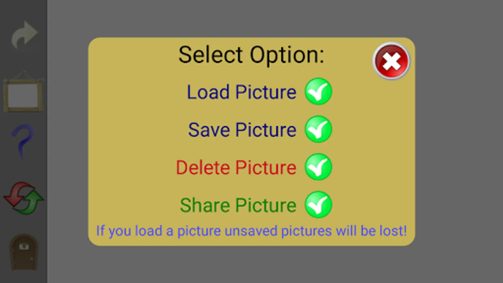 • Different drawing tools - including: line, circle, rectangle, color fill