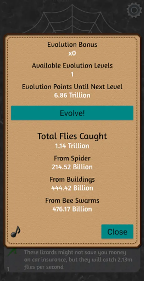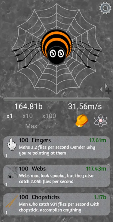 Tap the spider, upgrade your buildings, collect upgrades...catch those flies!!!