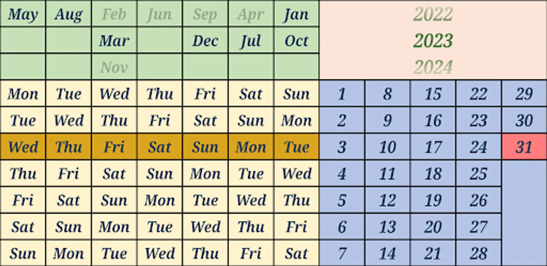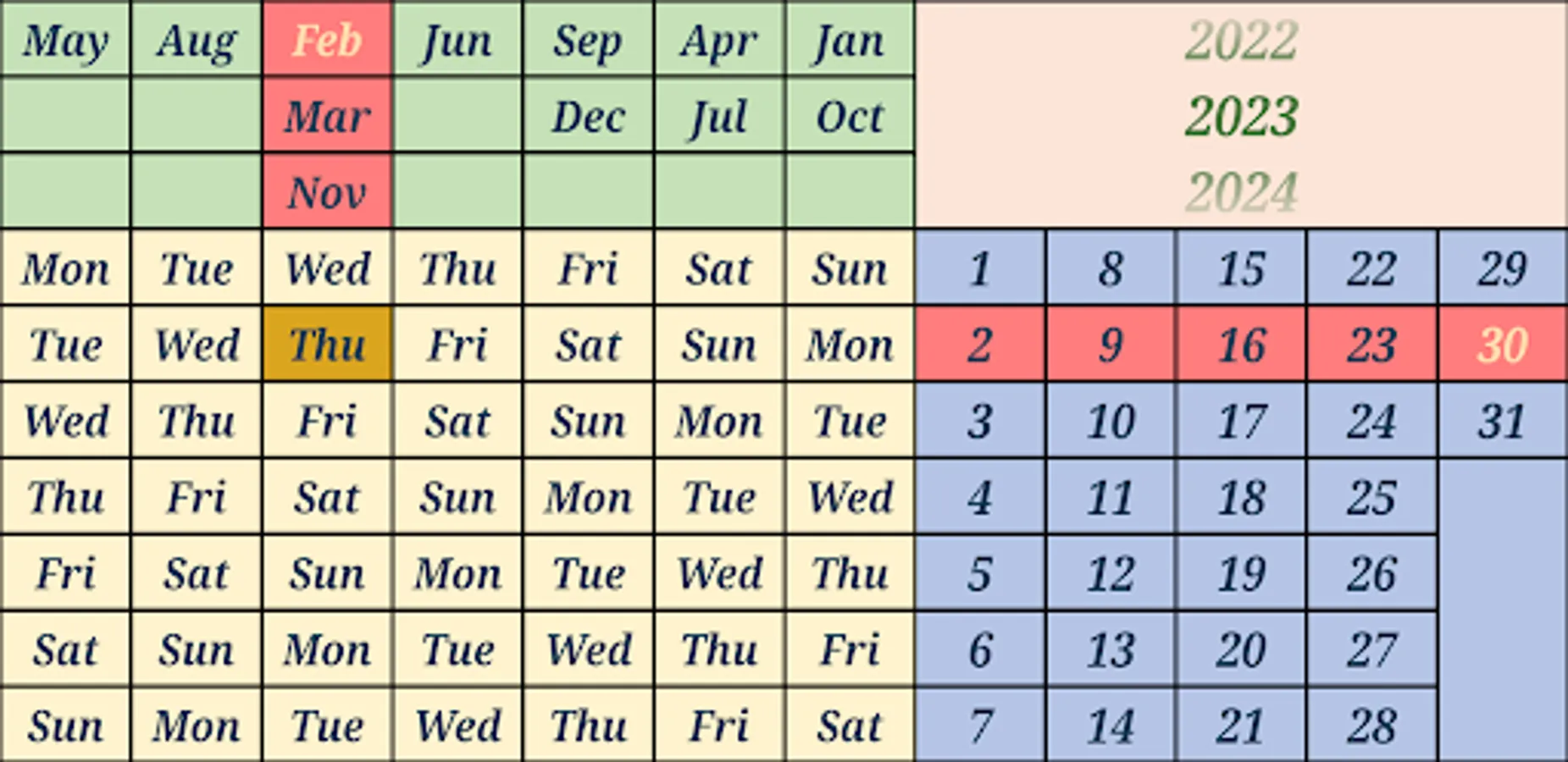 For example:- select November and Thursday to see what date Thanksgiving will fall on for the given year.