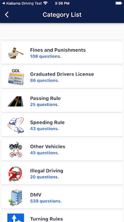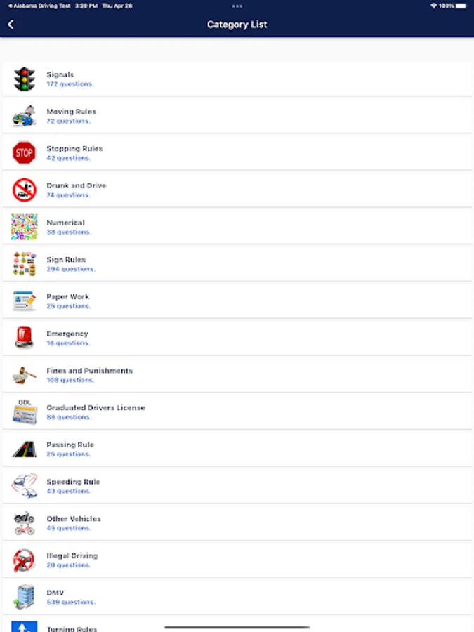 Alaska Driving test has over 1000+ Questions.There are 28 Categories from which you can select a Category and practice the test There are 10 set of DMV questions each having 50 Questions. By practicing this test you can PASS the WRITTEN TEST in FIRST ATTEMPT.