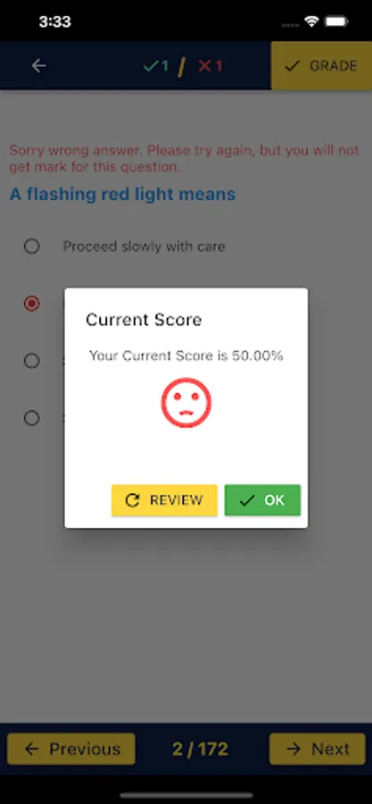 1) Tap on the "Real Test" button at the bottom of the app to write test similar to real test.