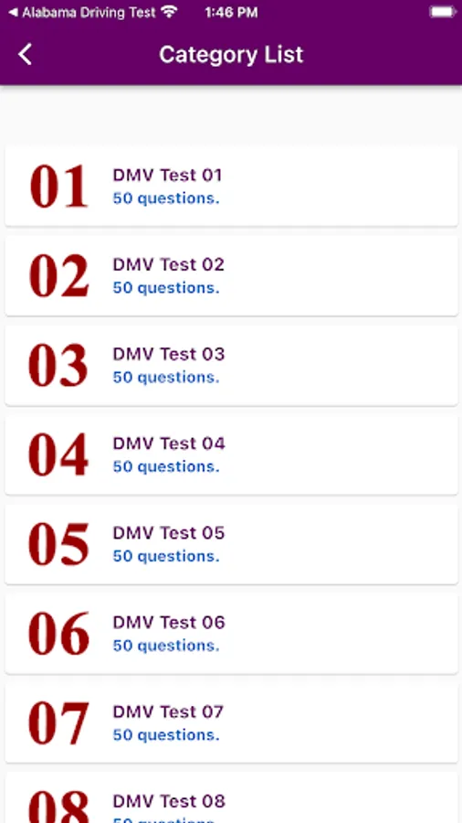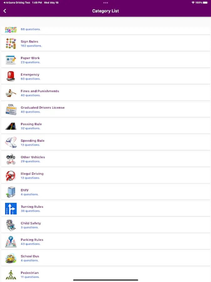 Arkansas Driving test has over 1000+ Questions.There are 28 Categories from which you can select a Category and practice the test There are 10 set of DMV questions each having 50 Questions. By practicing this test you can PASS the WRITTEN TEST in FIRST ATTEMPT.