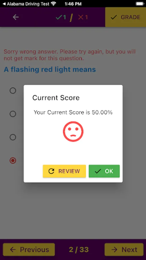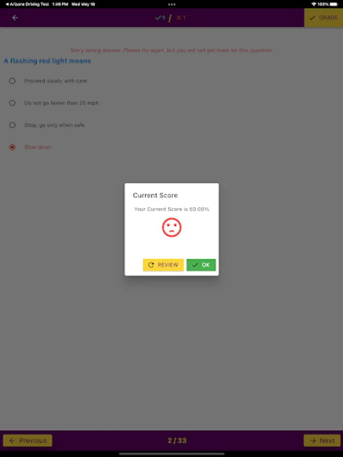 1) Tap on the "Real Test" button at the bottom of the app to write test similar to real test.