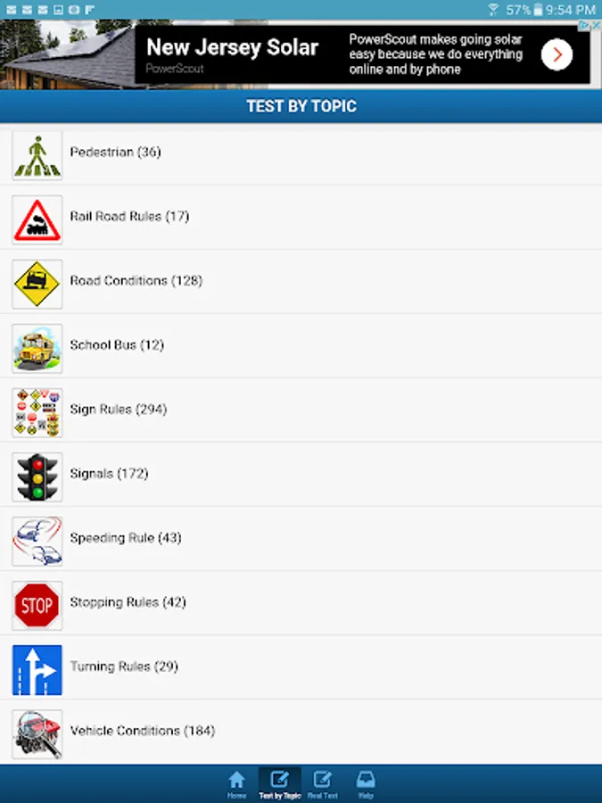 Delaware Driving test has over 1000+ Questions.There are 28 Categories from which you can select a Category and practice the test There are 10 set of DMV questions each having 50 Questions. By practicing this test you can PASS the WRITTEN TEST in FIRST ATTEMPT.
