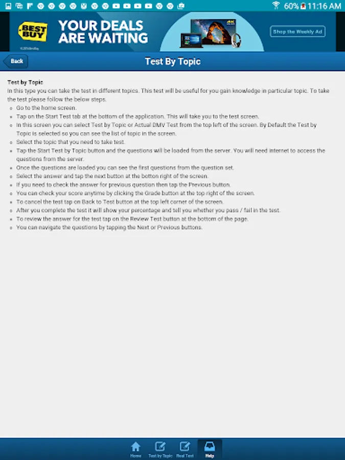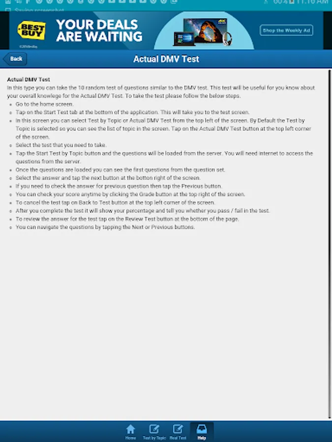 1) Tap on the "Real Test" button at the bottom of the app to write test similar to real test.