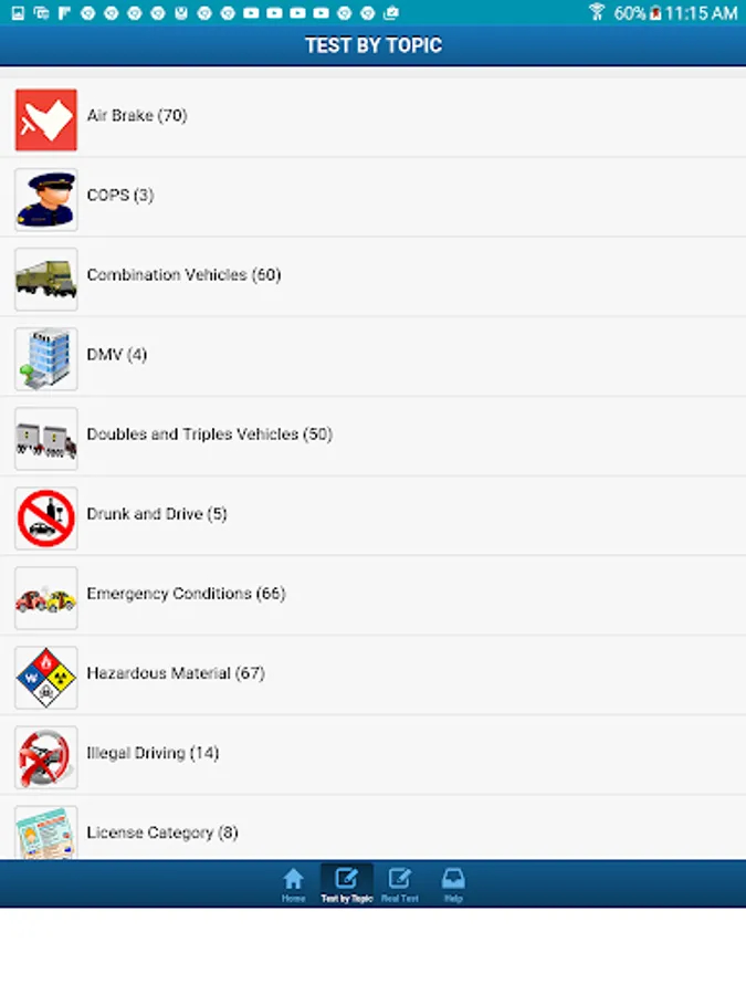 Kansas Commercial Driving test has 500+ Questions.There are 25 different Categories from which you can select a Category and practice the test There are 10 DMV test each having 50 Questions, which is same as the real test. By practicing this test you can PASS the WRITTEN TEST in FIRST ATTEMPT.