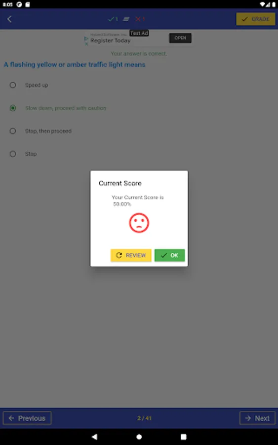 1) Tap on the "Real Test" button at the bottom of the app to write test similar to real test.