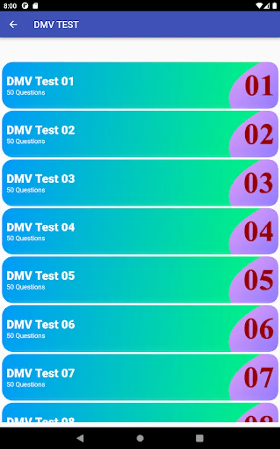 2) We have 10 test each carrying 50 questions. Tap on the button and start writing the test.