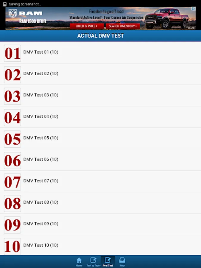 1) Tap on the "Real Test" button at the bottom of the app to write test similar to real test.