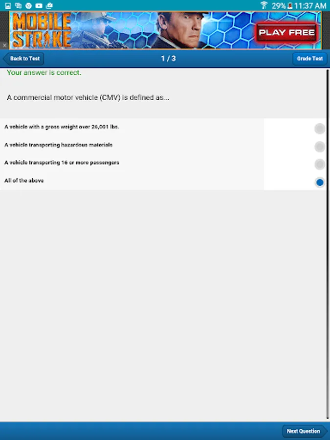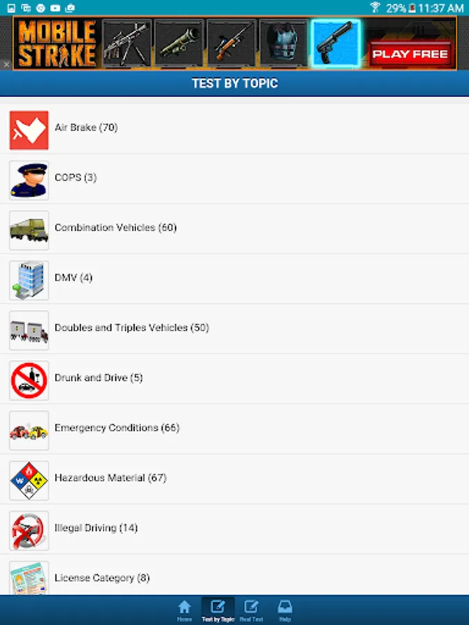 Nevada Commercial Driving test has 500+ Questions.There are 25 different Categories from which you can select a Category and practice the test There are 10 DMV test each having 50 Questions, which is same as the real test. By practicing this test you can PASS the WRITTEN TEST in FIRST ATTEMPT.