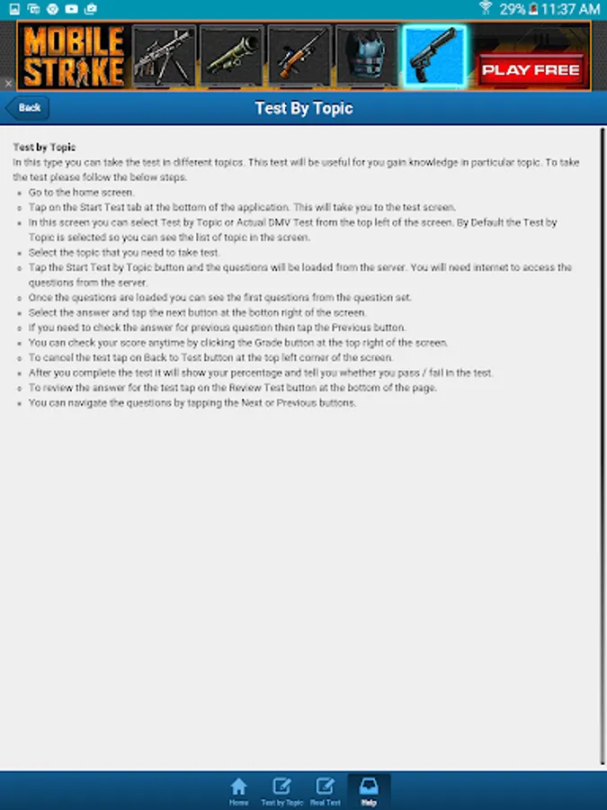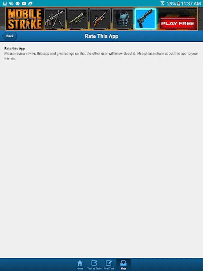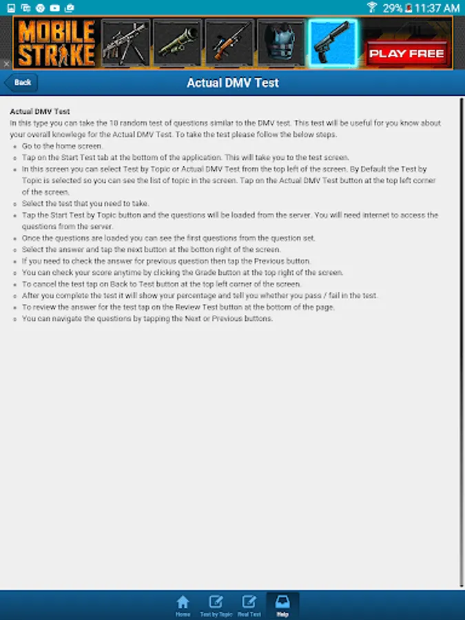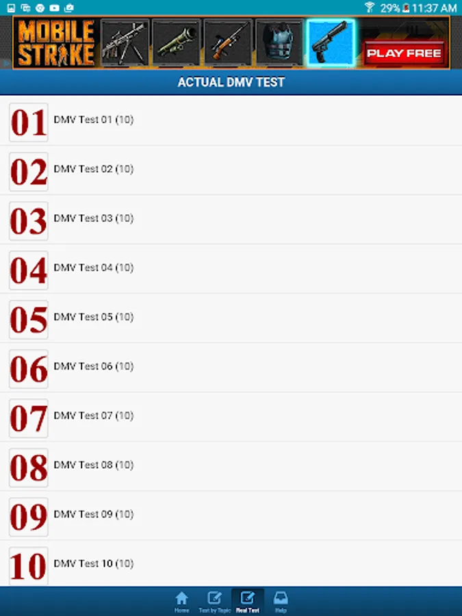 1) Tap on the "Real Test" button at the bottom of the app to write test similar to real test.