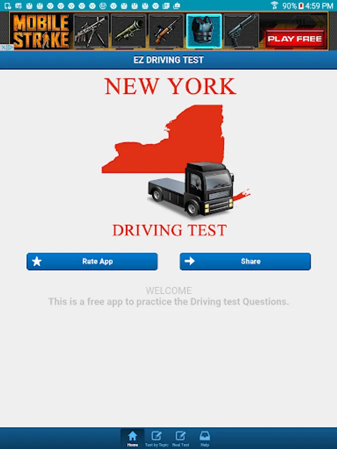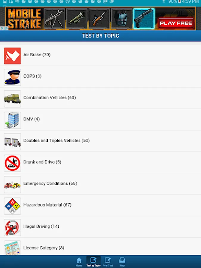 New York Commercial Driving test has 500+ Questions.There are 25 different Categories from which you can select a Category and practice the test There are 10 DMV test each having 50 Questions, which is same as the real test. By practicing this test you can PASS the WRITTEN TEST in FIRST ATTEMPT.