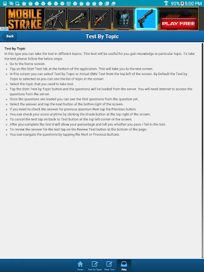 1) To write the test in different topics tap on the "Test by Topic" button at the bottom to app to write test in different category