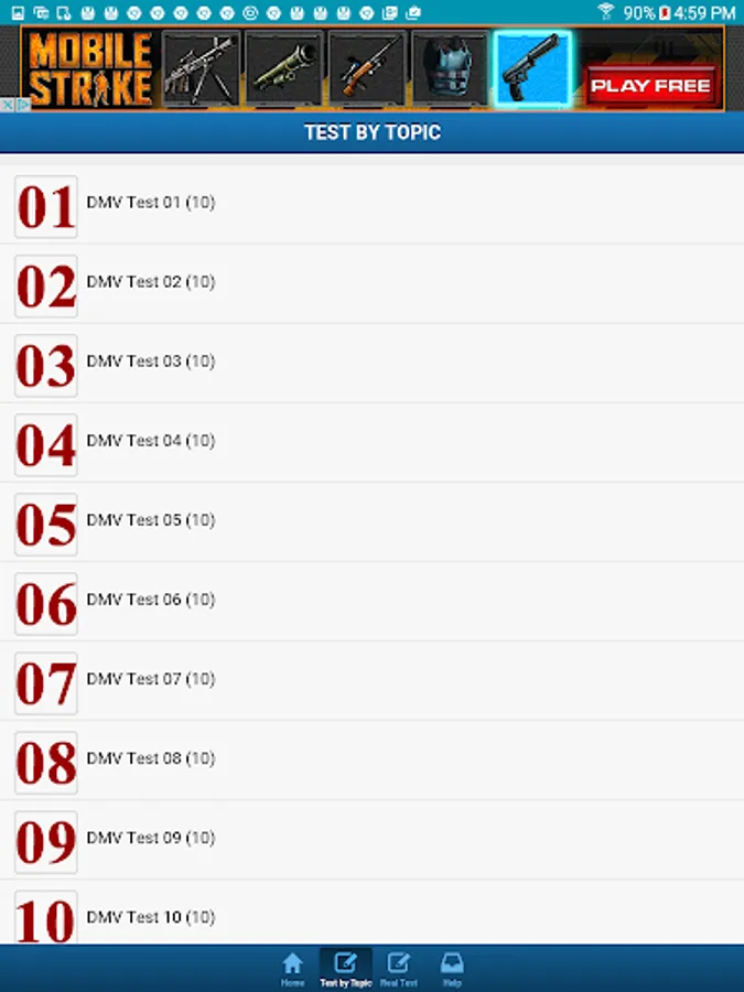 2) We have 10 test each carrying 50 questions. Tap on the button and start writing the test.