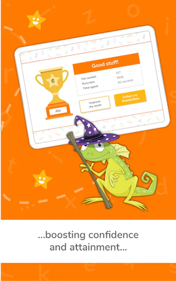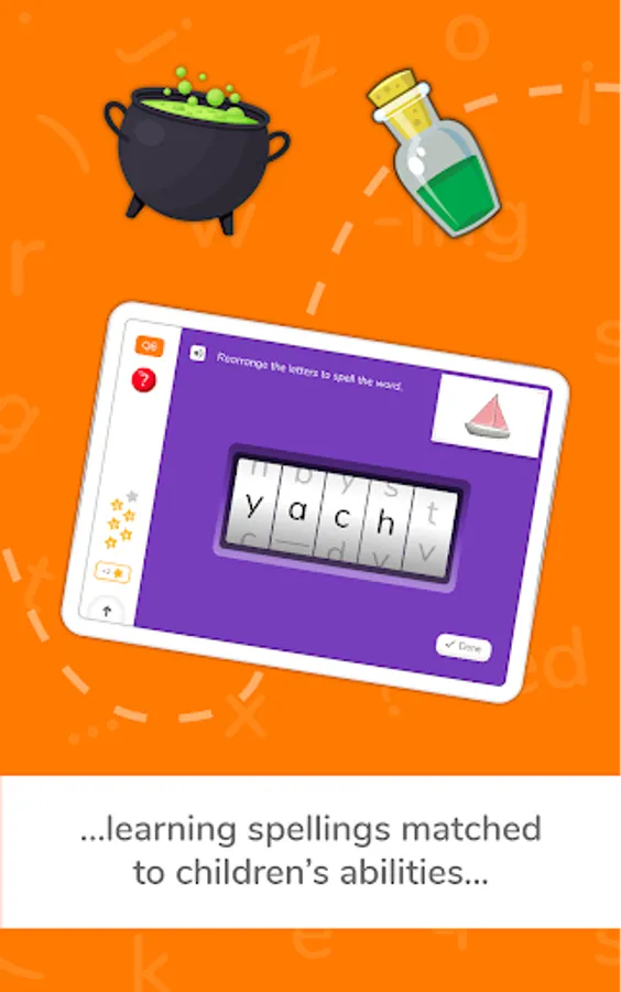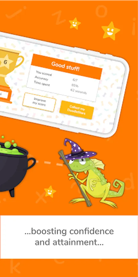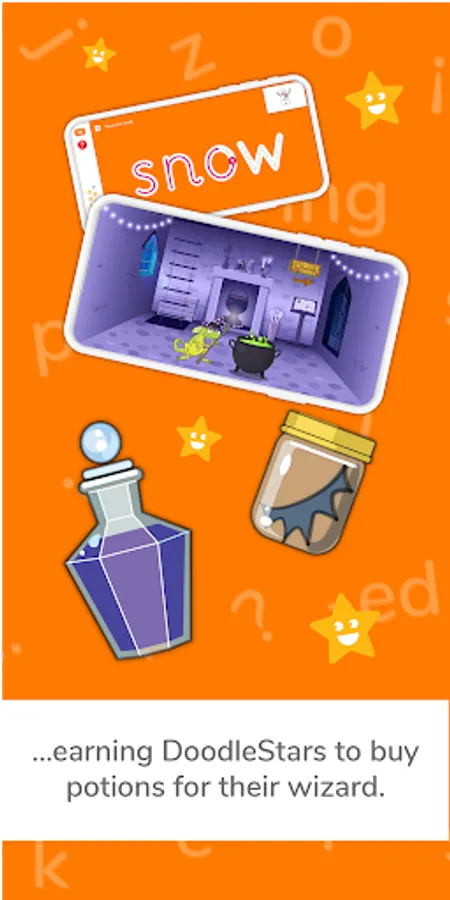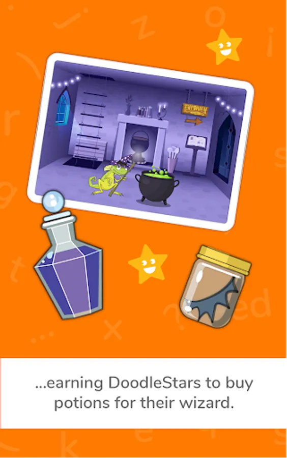 • A fun spelling journey where children earn DoodleStars to buy potions for their wizard