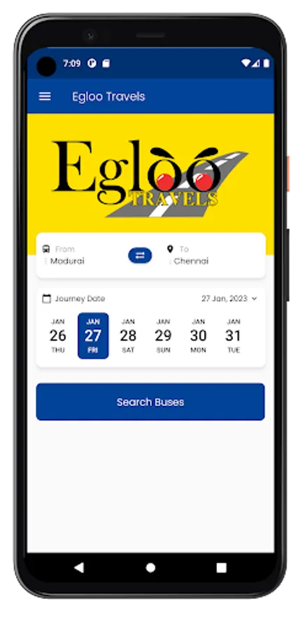 Online bus tickets booking application for Egloo Travels. This app designed for book, cancel bus tickets in Egloo Travels, also allows to manage already booked tickets history in Egloo Travels.