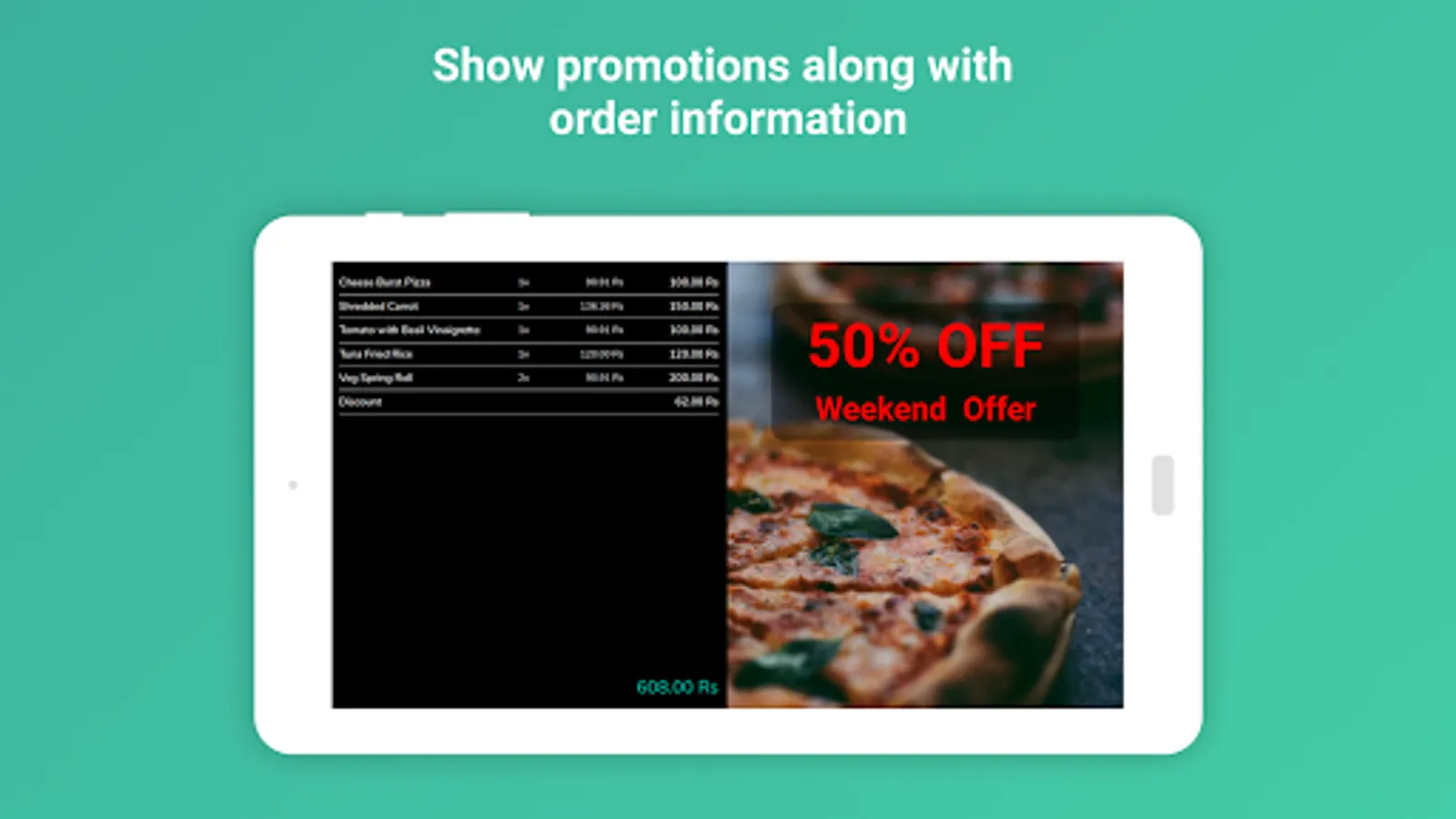 - Show promotions (image) along with order information.