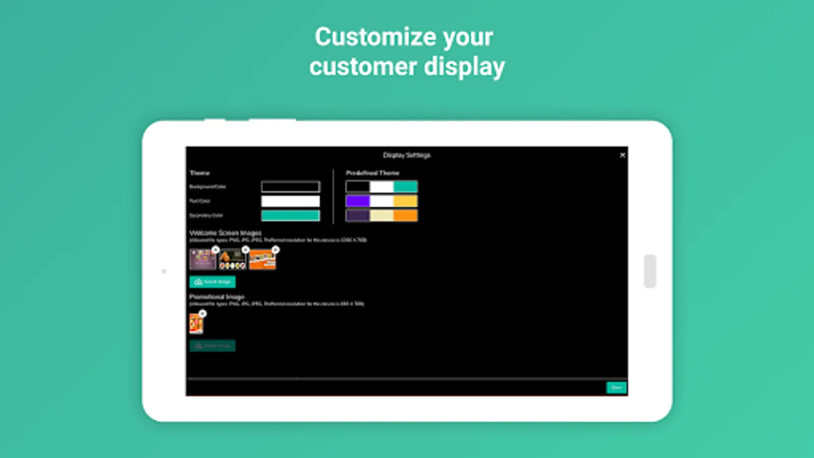 - Welcome screen that is highly configurable to show a slide of images when there's no order.