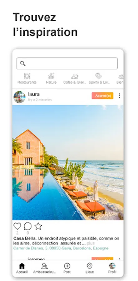 Browse through our tailor-made categories: restaurants, accommodation, activities, culture, nature... and much more. Immerse yourself in the recommendations of our community to live unforgettable moments!
