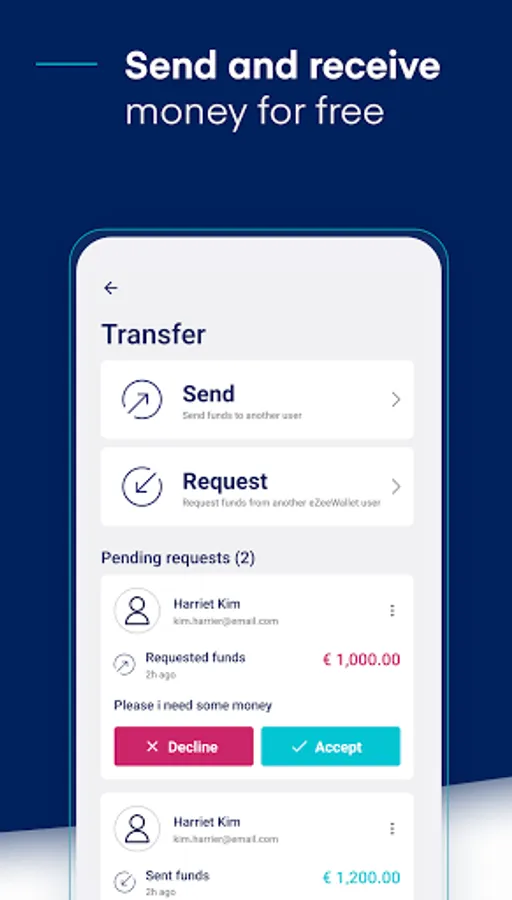 A digital wallet app that gives you control over your spending. Through our secure, easy-to-use app, you can transfer, deposit and spend money all in one place. Designed for both individuals and businesses, eZeeWallet makes paying and getting paid simple. Get started in a few easy steps!