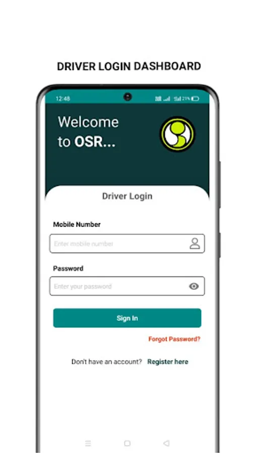 After registration with OSR Driver App, company send you Login details on your registered mobile number through message.