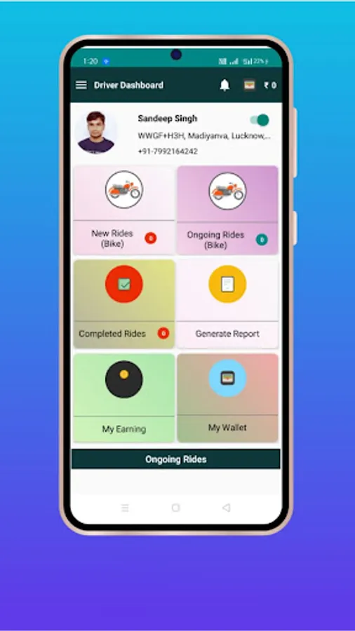 Here Driver can register using their details like mobile number, Aadhar card, pan card, vehicle no., D.L. number, registration certificate, insurance certificate and bank account details.