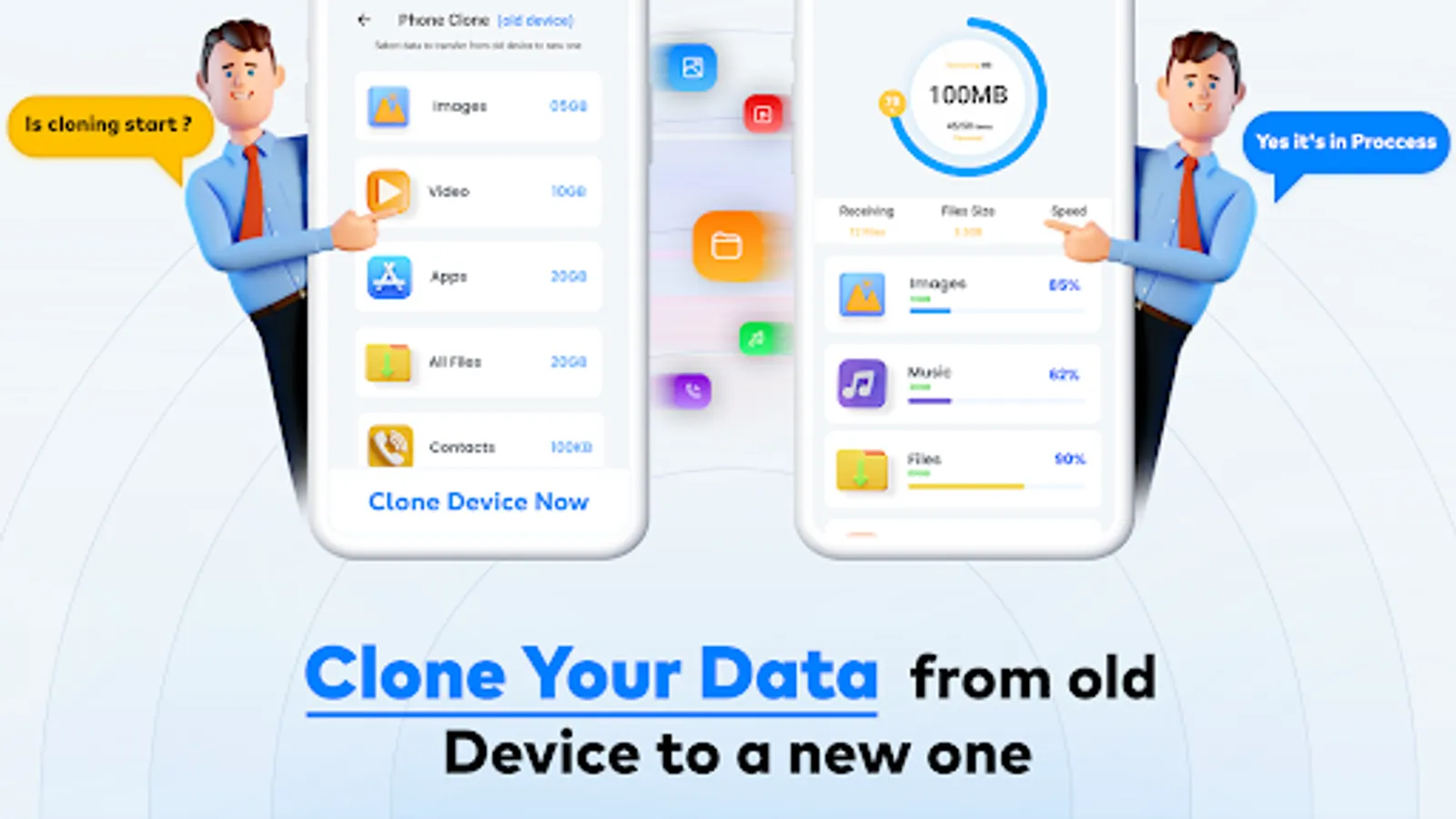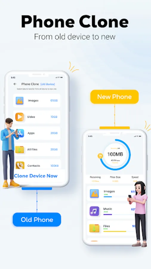 Smart Switch Phone clone App easily Phone to phone Data transfer migrates & content transfer to another smart phone. Phone Clone is a smart file transfer app will copy my all data send anywhere.