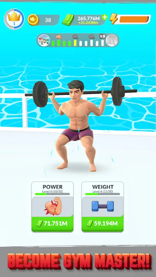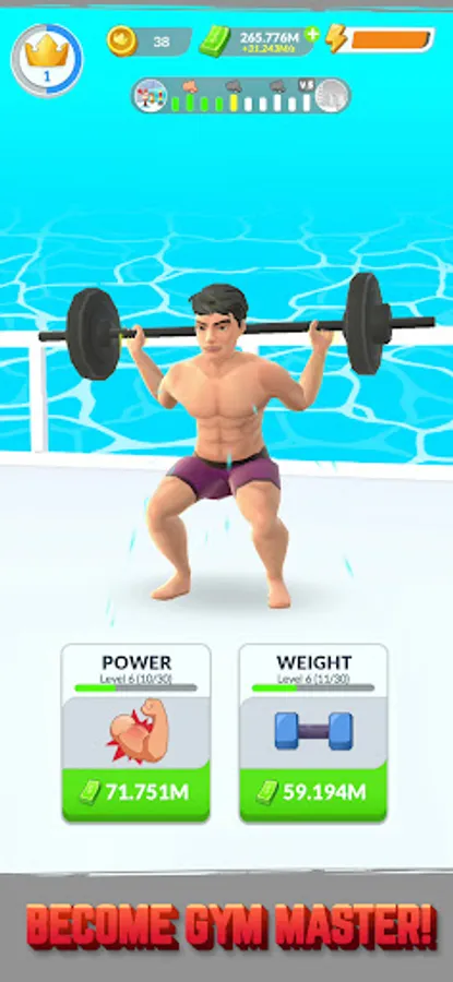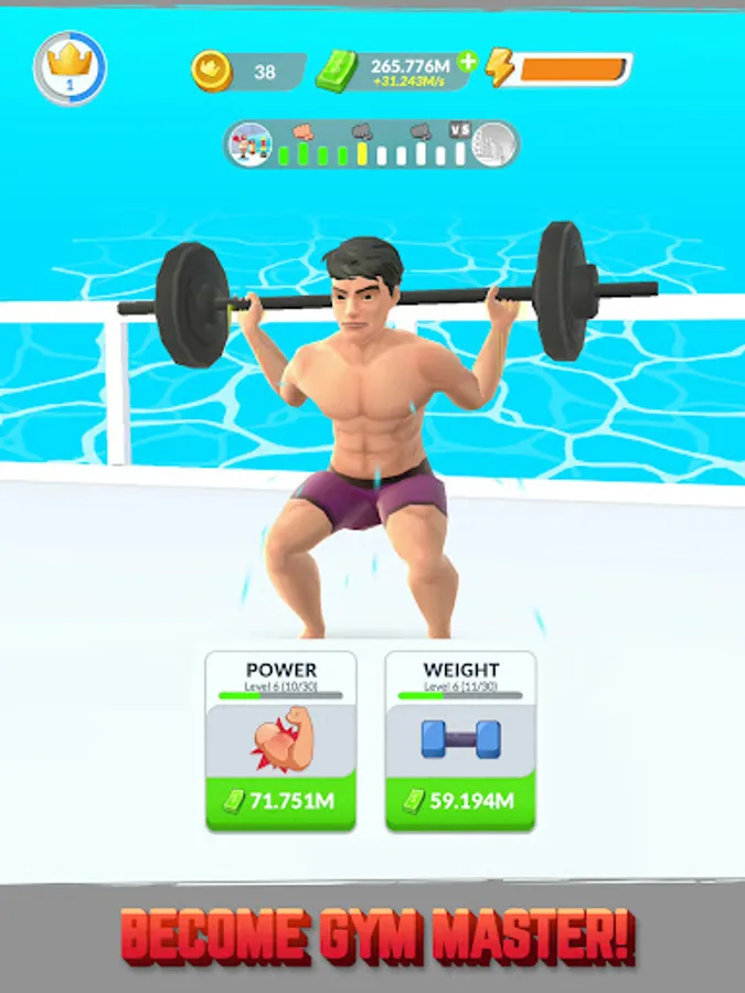 Download Idle Gym Life 3D! now and write the story of a boy on a road to become the world strongest man. You will begin as a fat, ugly and sad boy. But as the game advances - with many sets of exercises - your body will slowly change into that of a bodybuilder. The path won’t be a short and easy one, though. You will have to overcome many challenges & opponents in order to reach your goal. Your strength is not only shown through the calf or biceps muscles, but also tested through punching exercises, hammering and fighting with gangsters. Join us with funny graphics to reduce fat and increase muscle mass to the maximum and conquer challenges right away!