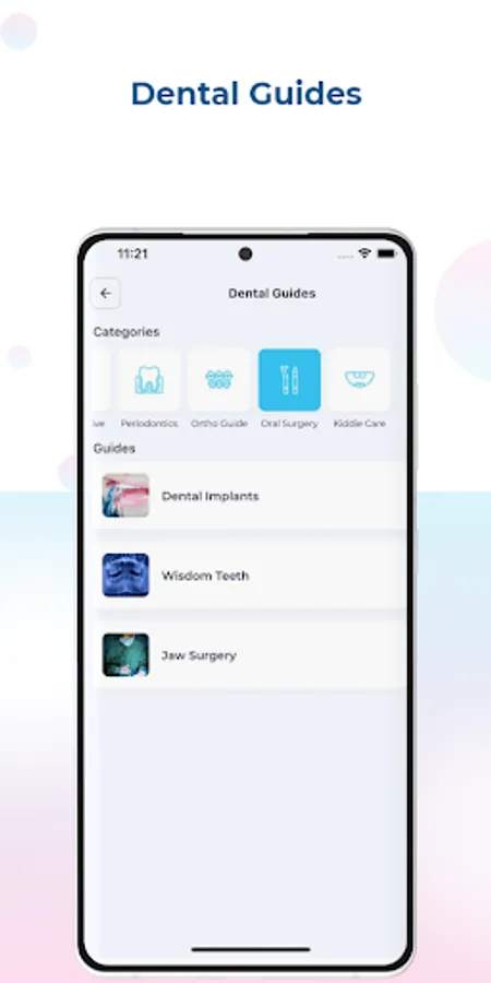 The dental guides encompass all the relevant fields within dentistry and is beneficial as a communication tool for clinicians as well as a knowledge centre for the general public, to bridge the gap between dentists and patients. These dental guides are a collection of written information, pictures, videos and useful websites which include the following topics: