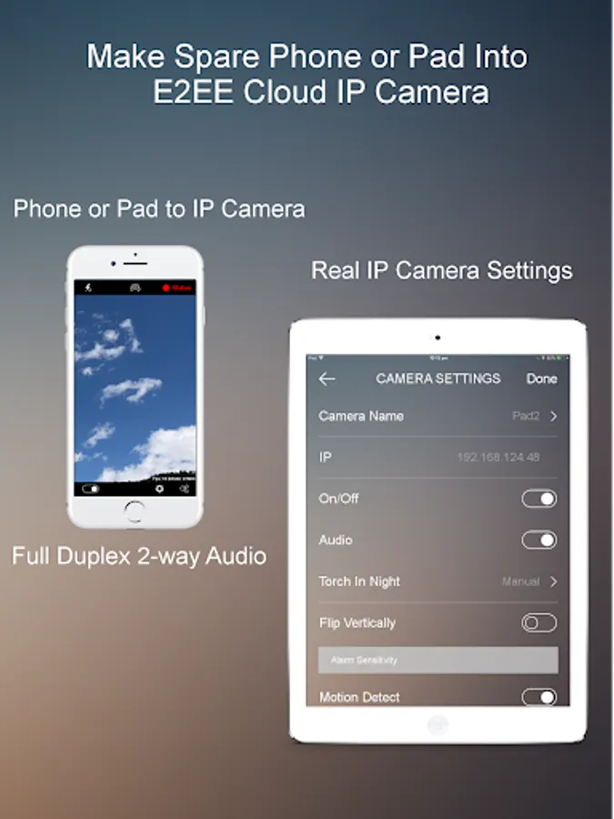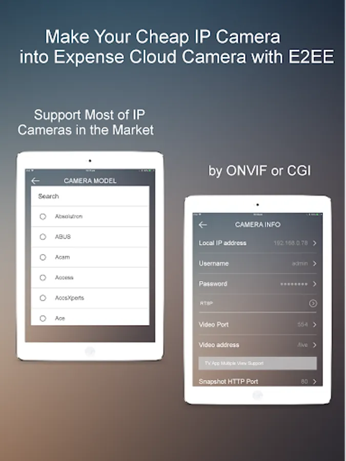 Install this App into a spare Android phone/tablet or iPhone/iPad to turn it into an E2EE camera hub to protect any of your IP security cameras through end-to-end encryption (E2EE). Turn any IP security camera into a cloud camera right now!