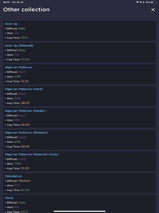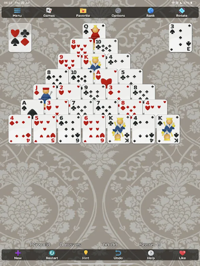 Variety of Challenging Games: Solitaire World offers an array of game modes to keep you engaged and entertained. From the traditional Klondike solitaire to exciting variations like Spider, Freecell, Pyramid, TriPeaks and more than 100 games; you can choose the mode that suits your playing style.