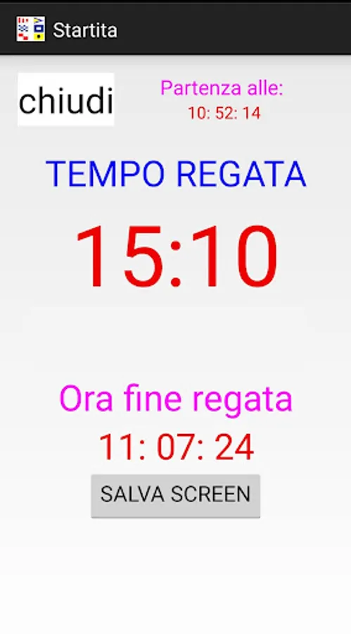NEW 2020: A voice calls the countdown times in Italian and English. Write the time of the start signal. Racing end the screenshot will show: The starting time, the racing time, the finishing time.