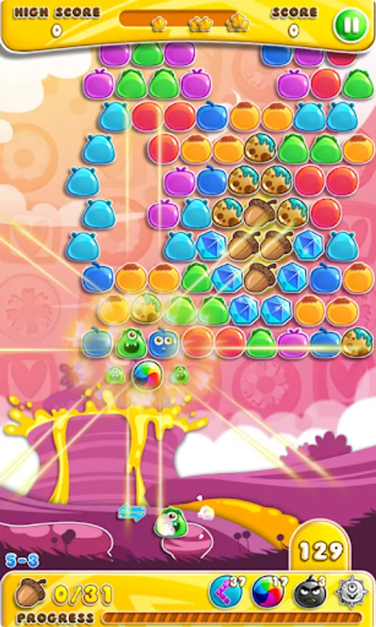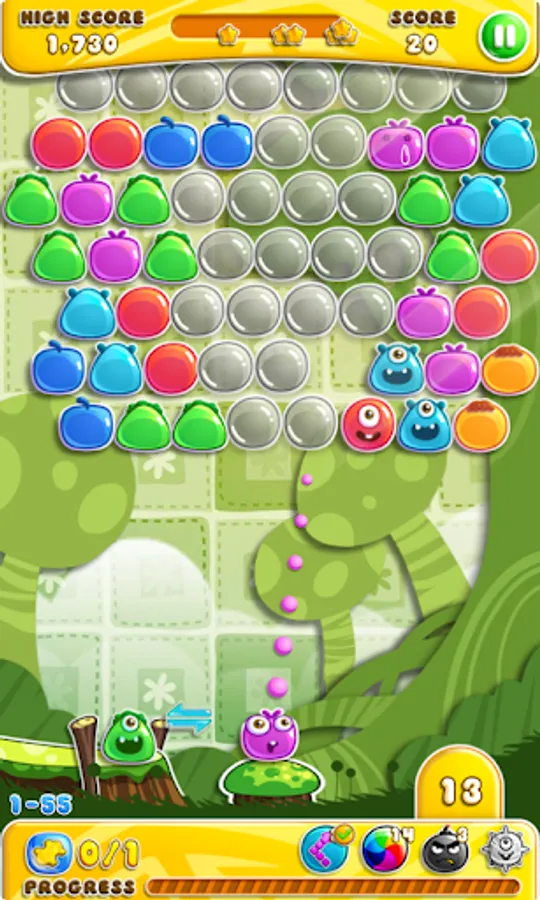- Tap the screen to shoot the bubble to group 3 or more the same color bubbles to make them burst;