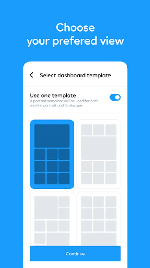 - Create your custom dashboards by using predefined templates for portrait and landscape orientations or one for both.