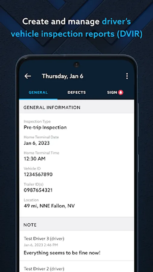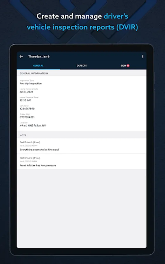 - Capture and store images with your driver vehicle inspection reports (DVIR)