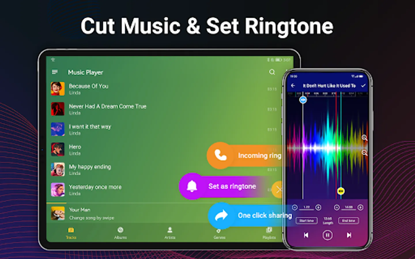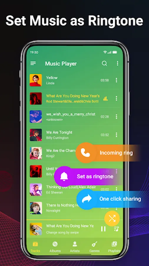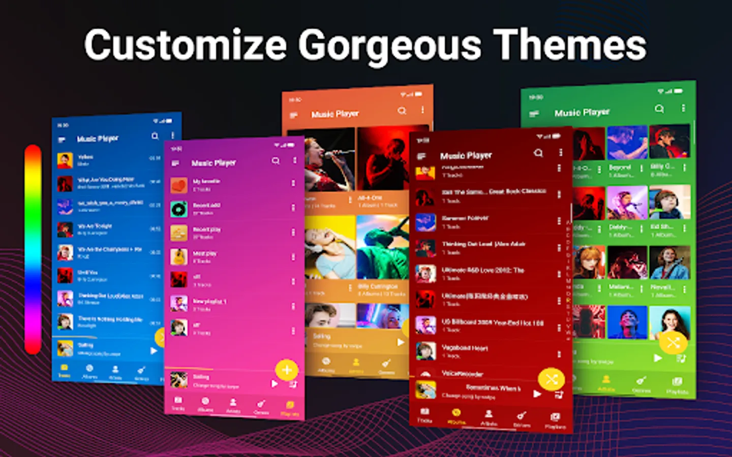 - Customize playlist, set albums, artists, genres, folders songs to playlist