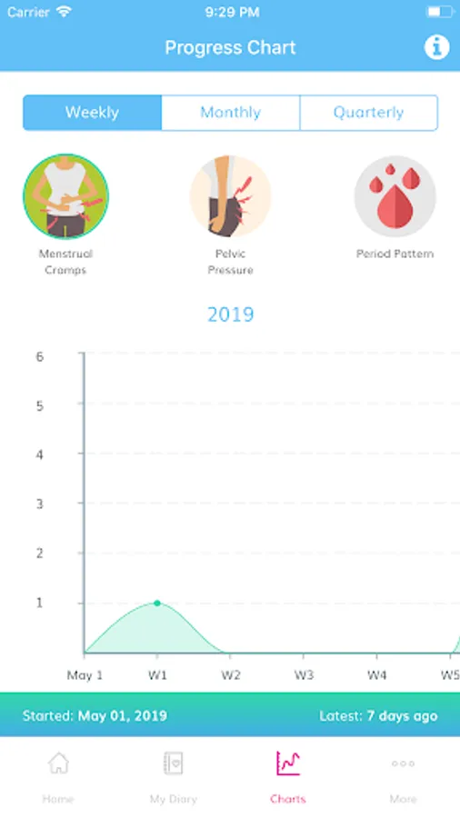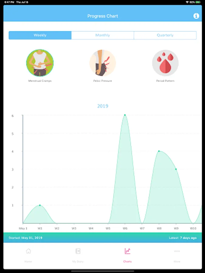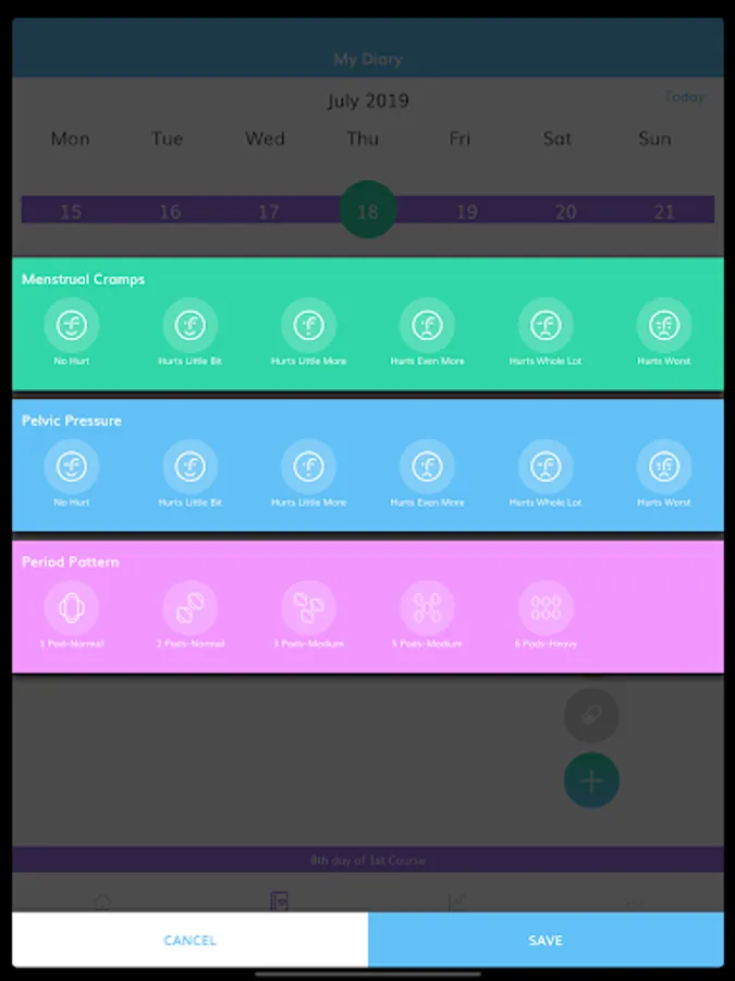 - Reliably tracks your period pattern, menstrual cramp and pelvic pressure with a calendar diary.
